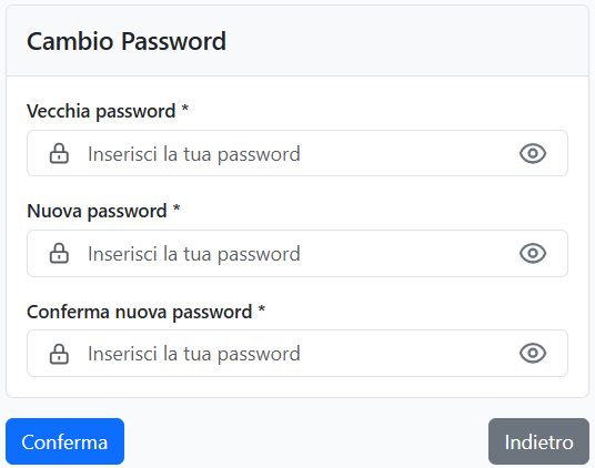 - Conferma nuova password: conferma della nuova password per evitare errori di digitazione.