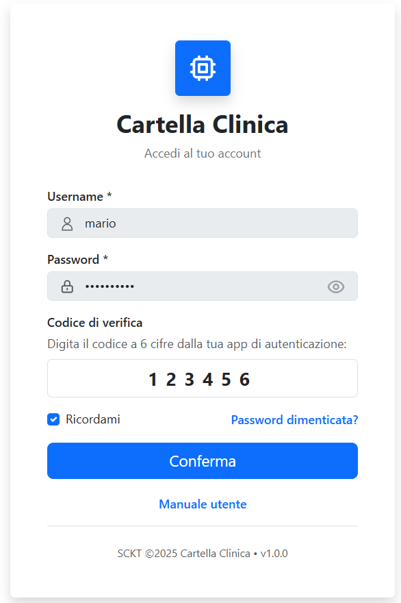 - Codice dell’Authenticator: se l’autenticazione a due fattori è attiva, inserire il codice generato dall’app Authenticator.