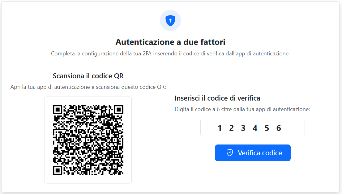 - Verifica Codice: dopo aver attivato l’Authenticator, l’utente deve inserire il codice di verifica generato dall’app Authenticator per completare o confermare l’accesso.