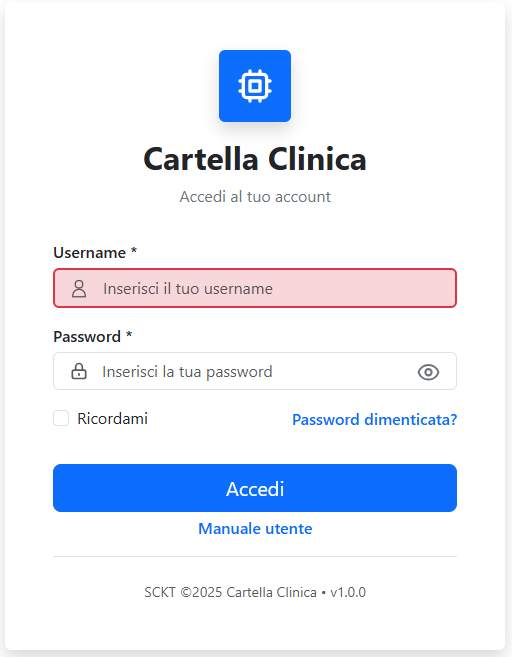 Clinical è un’applicazione web progettata per la gestione e la consultazione delle cartelle cliniche dei pazienti. Clinical consente agli utenti di archiviare, visualizzare e aggiornare in modo sicuro i dati sanitari, includendo informazioni anagrafiche, diagnosi, trattamenti, referti e storico delle visite, garantendo un accesso rapido e organizzato alle informazioni mediche.