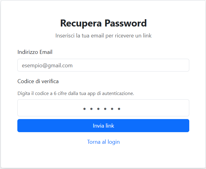 Una volta completato il reset della password, l’utente verrà reindirizzato alla Pagina di Login per accedere con le nuove credenziali.