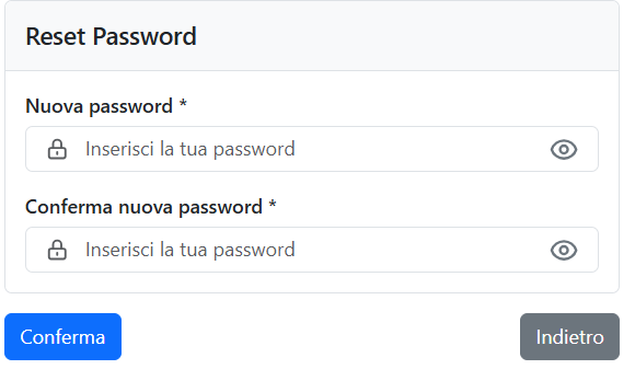 La pagina di Resetta del password viene mostrata quando l’utente clicca sul link ricevuto via email per reimpostare la password.